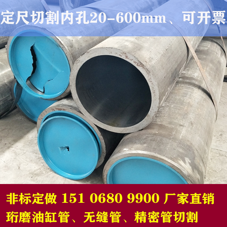 目前生產品種規格為:內徑直徑20mm—600mm,壁厚為2mm—100mm。技術條件為:內孔精度H5—H8,內孔粗糙度Ra≤0.63um,直線度≤0.3mm/m。鋼號是20#—45#、16Mn、304不銹鋼、316L不銹鋼、27SiMn及部分低合金鋼,標準GB8713-88。規格為20-600*2-100mm,長度為2-12M的各種類型油缸管,年產銷售能力3萬噸。設備先進,生產工藝優化,檢測手段完善。